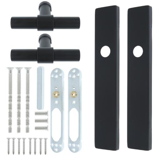 Deurkruk Pesaro op rechthoekig schild is vervaardigd uit roestvast staal en is naderhand afgewerkt met een zwarte poedercoat. Deze deurklink wordt geleverd met schild en heeft een stalen onderconstructie. Geschikt voor een deurdikte van 38 – 42 mm