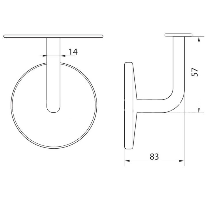 De leuninghouder komt 83 mm naar voren en is 57 mm hoog.