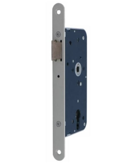 Dit Lips loopslot met dagschoot heeft een ronde voorplaat gelakt en een gelakte slotkast. De doornmaat van dit slot is 50 mm.