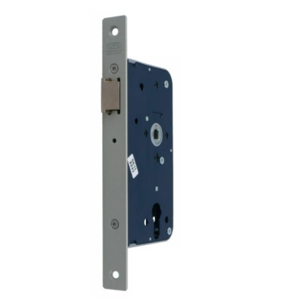 Dit Lips loopslot met dagschoot heeft een rechthoekige voorplaat gelakt en een gelakte slotkast.