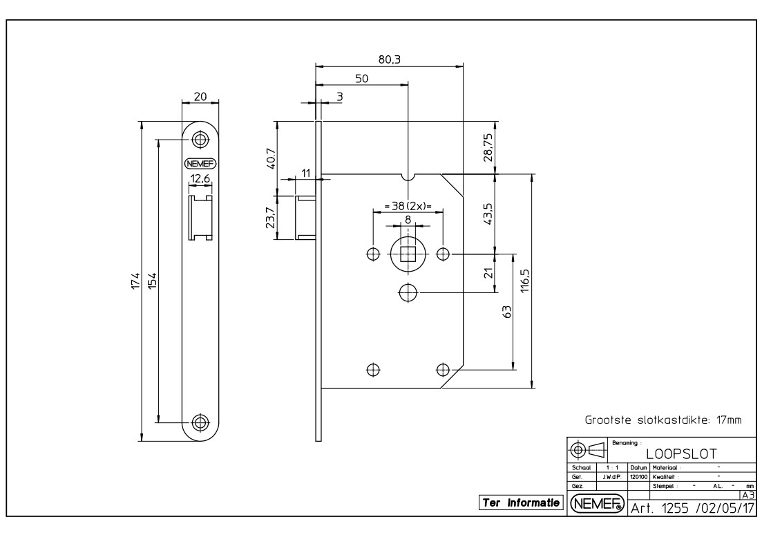 Nemef loopslot 1255/17 met rvs voorplaat