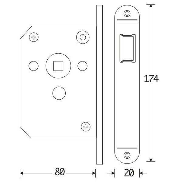- Afmeting slotkast: 116,5 x 80,3 x 17 mm