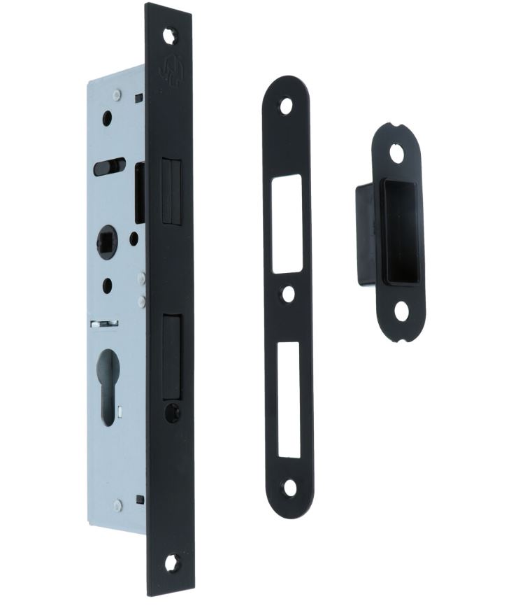 Magneet smal cilinderslot PC55 Met zwarte Rechte Voorplaat