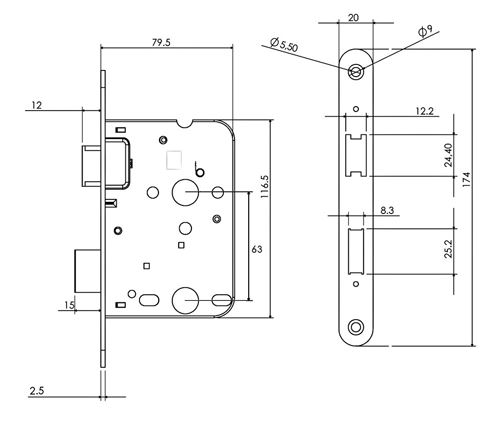 Woningbouwslot toepasbaar voor binnendeuren.