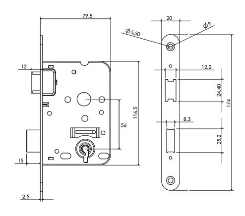 Woningbouwslot toepasbaar voor binnendeuren.