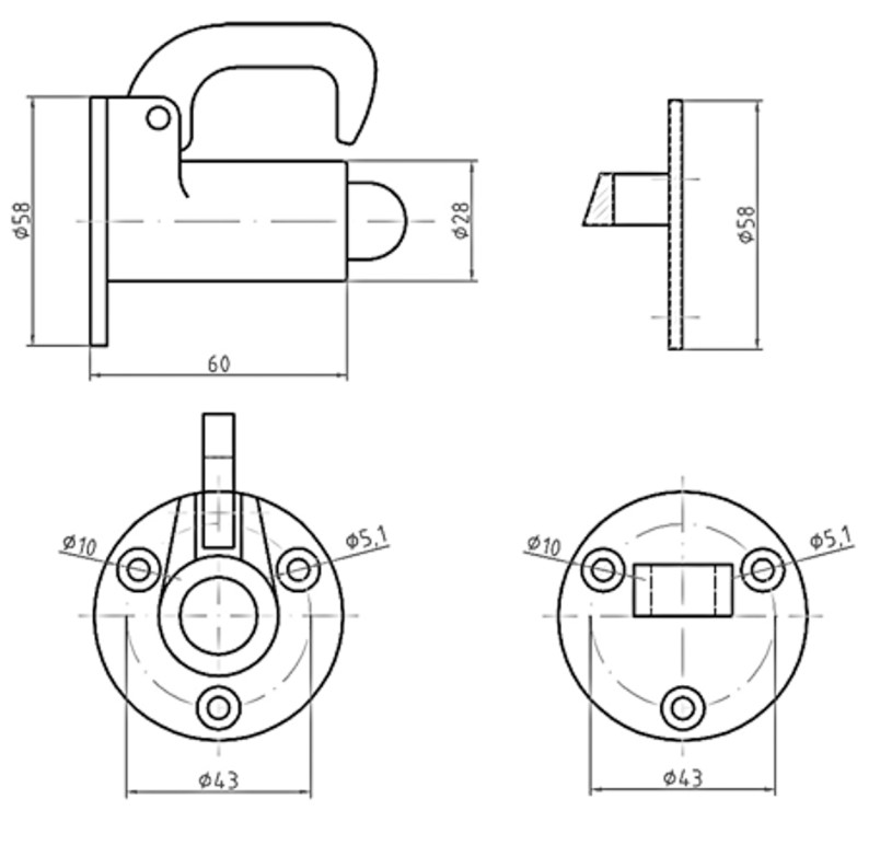Deurvastzetter L=60 D=58 compleet met tegenplaat.