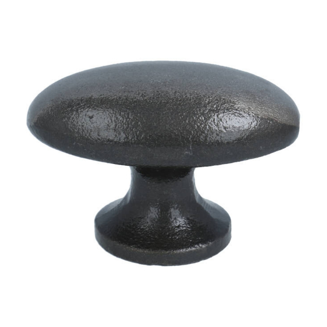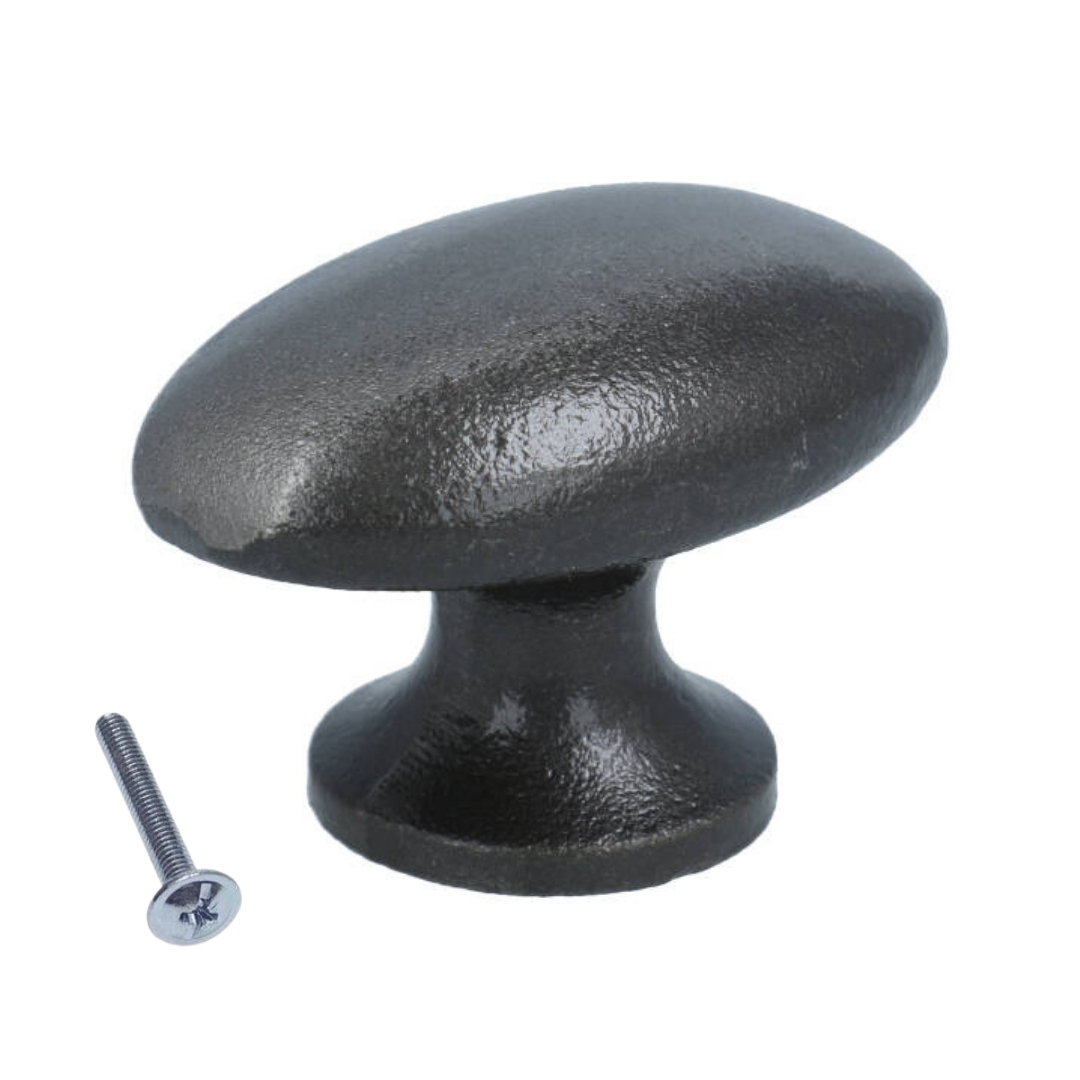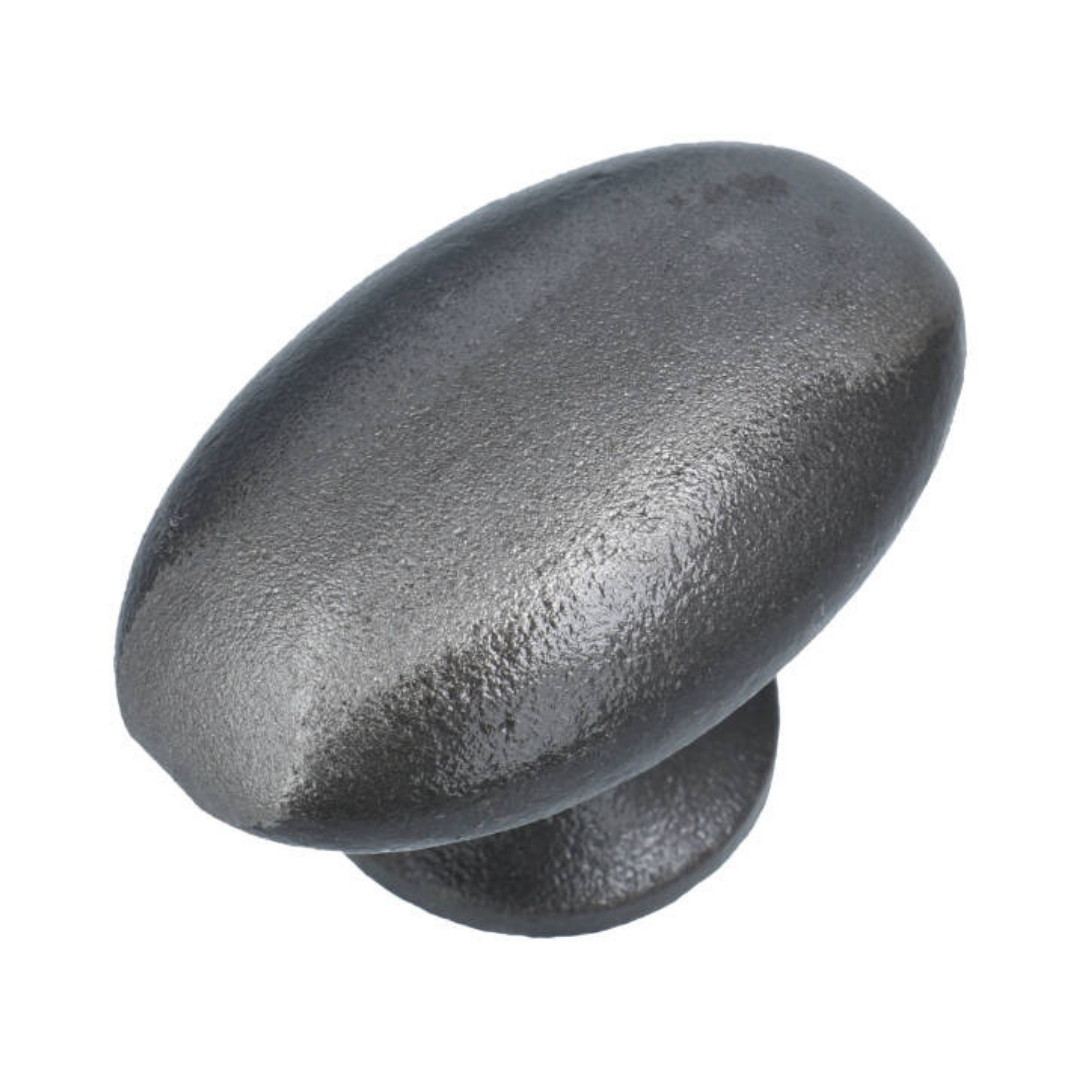Deze meubelknop is ovaal met de maten 60 x 35 mm en heeft een hoogte van 38 mm. Het materiaal is ijzer.