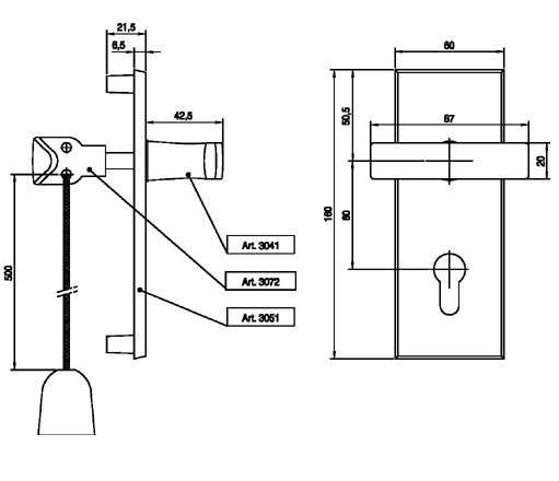 Langschildgarnituur voor garagedeuren bestaande uit een buitenkruk 3041/4.