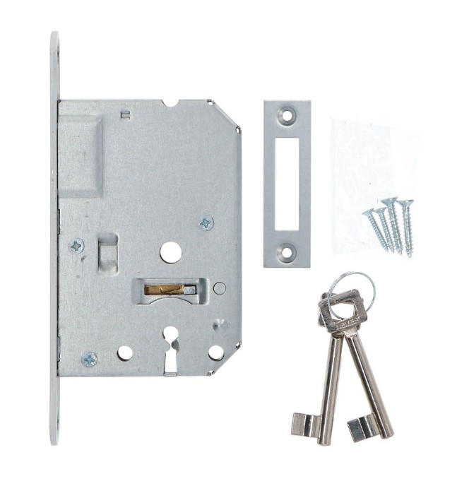 Dit slot wordt geleverd met een sluitplaat, 2 sleutels en schroeven.