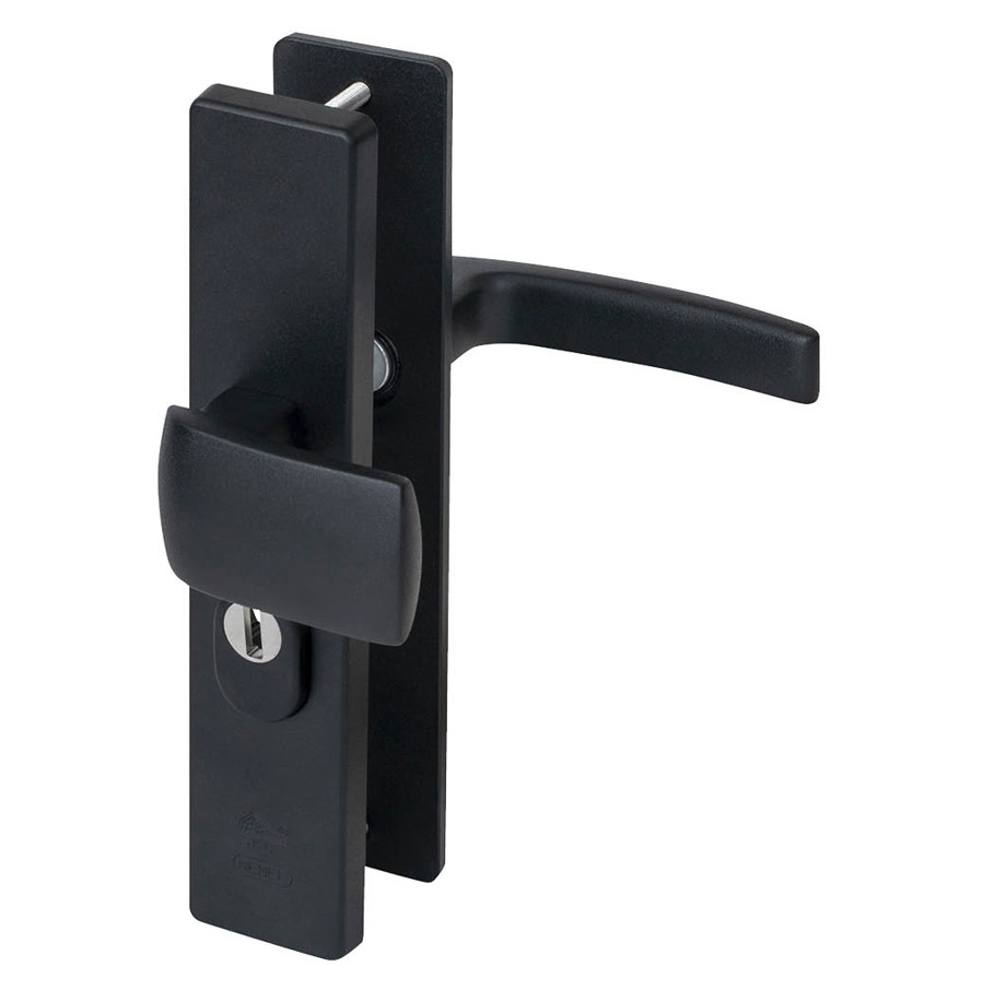 Nemef veiligheidsbeslag PC55 langschild knop/kruk 3415-II met kerntrek beveiliging SKG3 aluminium zwart