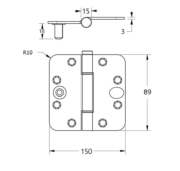 Door zijn ronde hoeken is hij uitermate geschikt om machinaal te verwerken. Met een freesmachine kan de uitsparing in deur of raam en kozijn gemaakt worden. Daarnaast zorgt de doorgezette knoop voor meer montagegemak. Het draaipunt van het scharnier is namelijk uit het midden geplaatst, waardoor inkrozing van de knoop in het kozijn niet nodig is. Dit scharnier is ook leverbaar met een dubbele doorgezette knoop en daardoor ideaal voor de toepassing bij klepramen of uitzetramen. Door de dubbele doorgezette knoop voorkom je dat bij regenachtig of vochtig weer het water blijft liggen en jouw raamkozijnen vervolgens aantast.