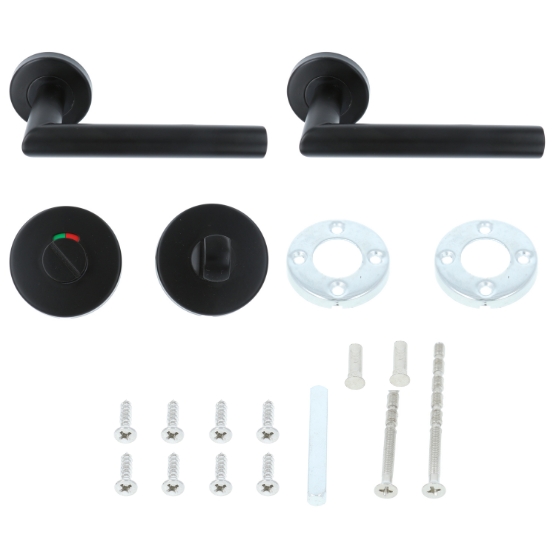 ODShop deurklink Modern haaks op rond rozet mat zwart + toiletsluiting