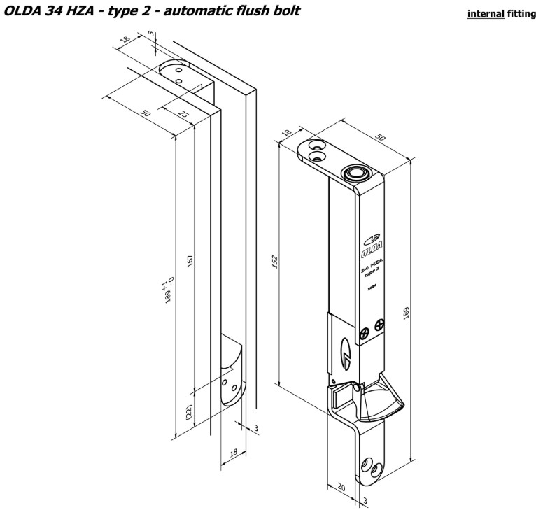Olda automatische kantschuif type 34 voor stalen/aluminium/houten deuren type 2 staal verzinkt