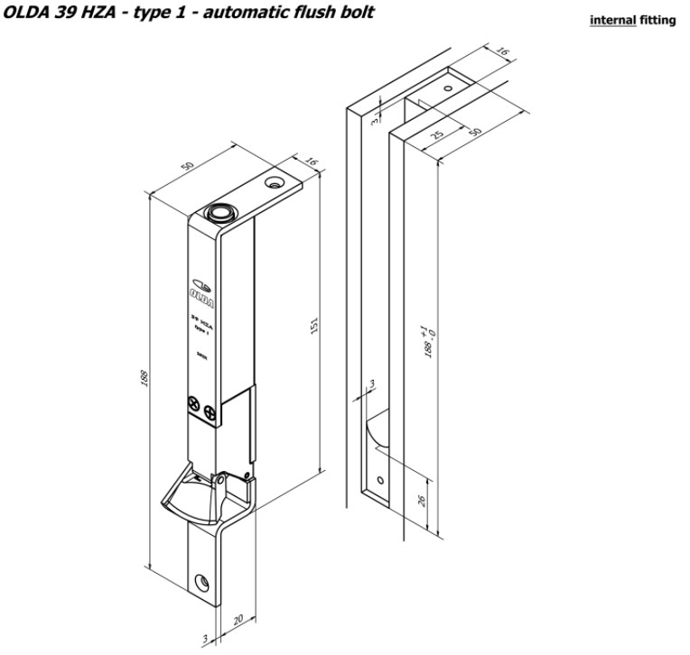 Olda automatische kantschuif smal type 39 voor stalen/aluminium/houten deuren type 1 staal verzinkt