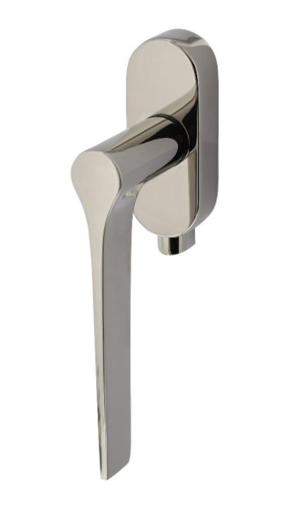 Raamkruk Lama L is ontworpen door de Italiaanse architect Gio Ponti. Kenmerkend voor het ontwerp van deze raamkruk is de geometrische eenvoud van de vorm, die zo dun is, dat hij op een lemmet lijkt (lama in het Italiaans). Deze afsluitbare raamkruk op ovale rozet is uitgevoerd in messing en voorzien van een hoogwaardige nikkelkleurige PVD coating. Door deze speciale behandeling, is de finish van een buitengewone kwaliteit. Hierdoor is het behoud van de oorspronkelijke finish gegarandeerd voor een periode van 30 jaar. Deze raamkruk is speciaal bedoeld voor draaikiep ramen en voorzien van nokken, waardoor hij beter op zijn plek wordt gehouden. Raamkruk Lama L wordt per stuk geleverd inclusief bevestigingsmateriaal.