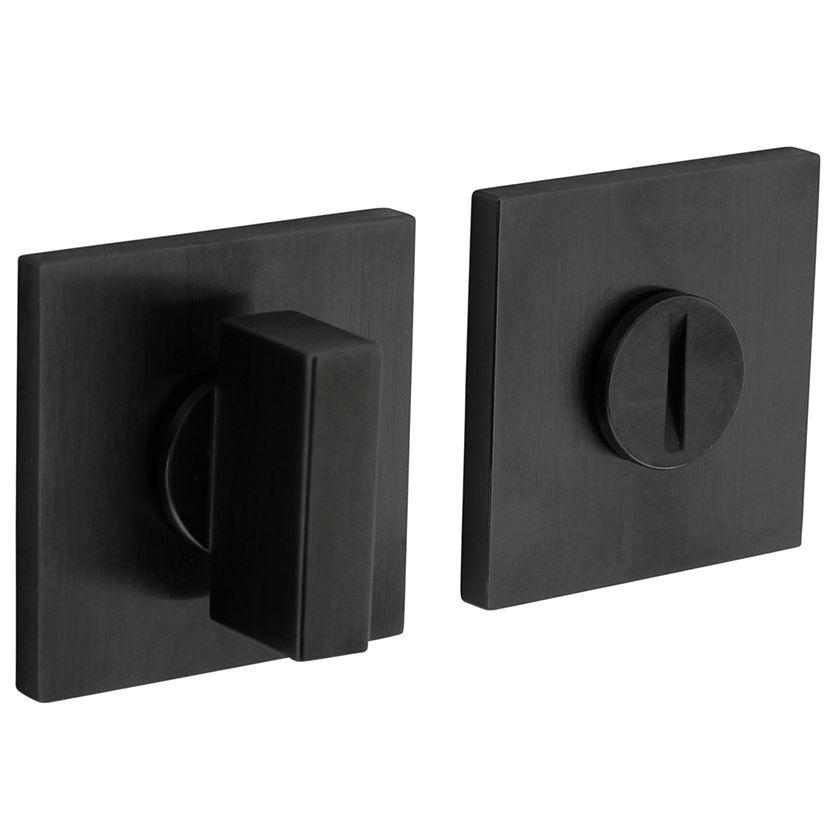 Een toilet-/badkamersluiting zorgt ervoor dat u een deur gemakkelijk kunt openen en afsluiten. Deze rozet met toilet-/badkamersluiting is uitgevoerd in messing en voorzien van een hoogwaardige matte antracietkleurige PVD coating. Door deze speciale behandeling, is de finish van een buitengewone kwaliteit. Hierdoor is het behoud van de oorspronkelijke finish gegarandeerd voor een periode van 10 jaar. Deze vierkante toilet-/badkamersluiting is voorzien van nokken (doorgaande bevestiging) en wordt per set geleverd.