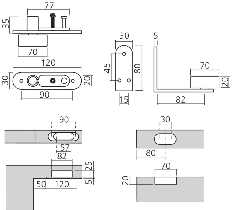 Bevestiging in de deurstijl, zonder boring in de vloer.