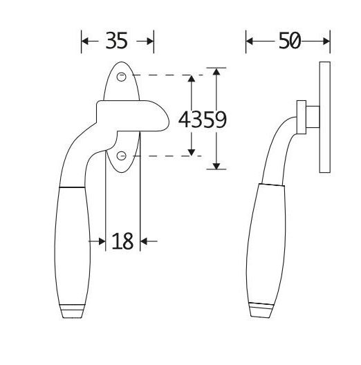 De maten van deze raamsluiting staan in de afbeelding
