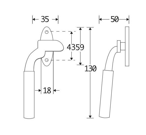 De maten van deze raamsluiting staan in de afbeelding