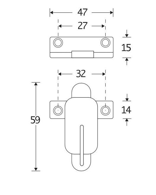 De maten van deze raamknip staan in de afbeelding.