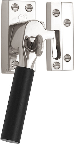 Deze raamsluiting is van Formani uit de serie Timeless, 1923 Inspired by Bauhaus. Het materiaal is mat nikkel en Ebbenhout. De raamsluiting is afsluitbaar SKG1.