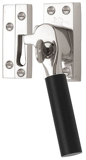 Deze raamsluiting is van Formani uit de serie Timeless, 1923 Inspired by Bauhaus. Het materiaal is glans nikkel en Ebbenhout. De raamsluiting is afsluitbaar SKG1.