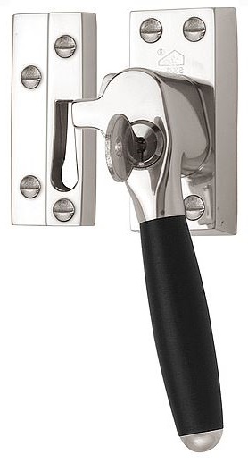 Deze raamsluiting is van Formani uit de serie Timeless. Het materiaal is glans nikkel en Ebbenhout. De raamsluiting is afsluitbaar SKG1.
