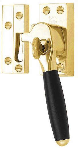 Deze raamsluiting is van Formani uit de serie Timeless. Het materiaal is messing ongelakt en Ebbenhout. De raamsluiting is afsluitbaar SKG1.