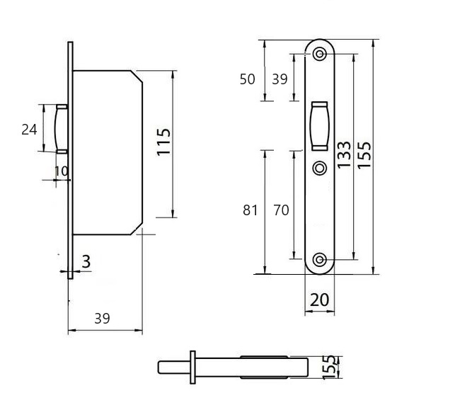 Dit tonrolslot heeft een voorplaat van 155 x 20 mm en een diepte van 39 mm het rolslot wordt geleverd inclusief sluitplaat.