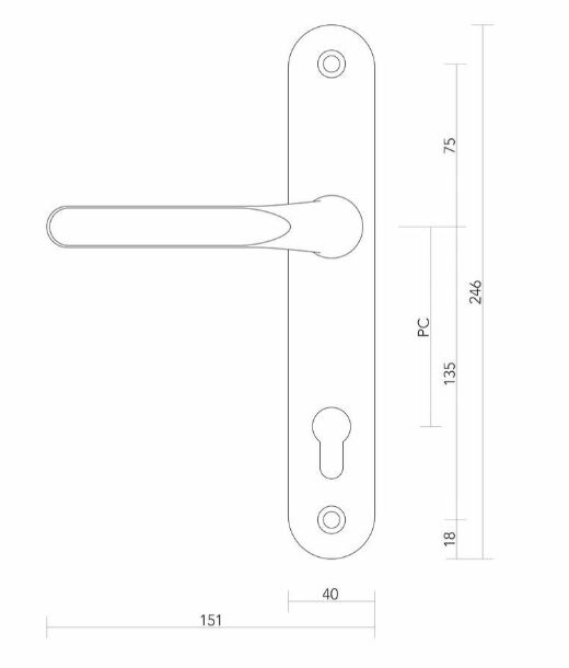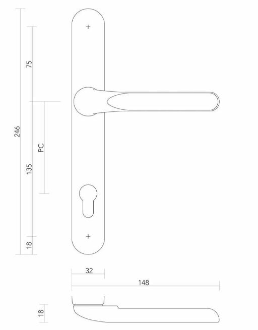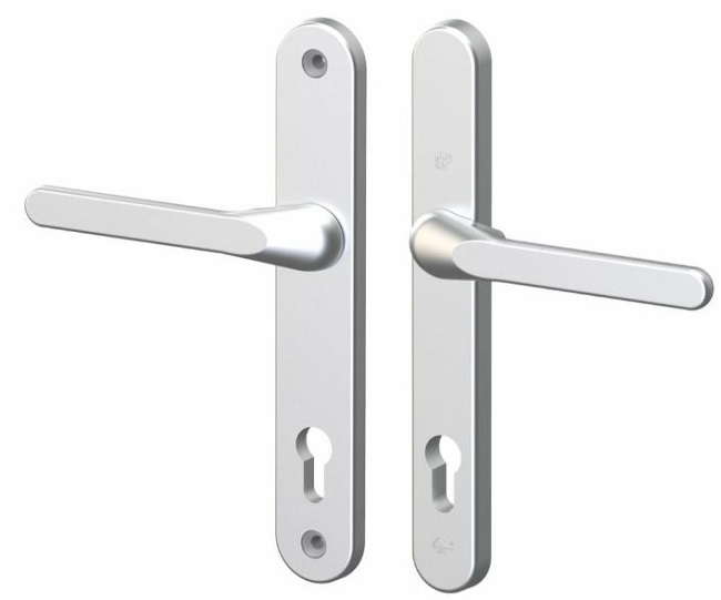 Deze set heeft aan de buitenkant en aan de binnenkant een heel vlakke deurkruk (zie maattekening). Dat is speciaal voor rolluiken.