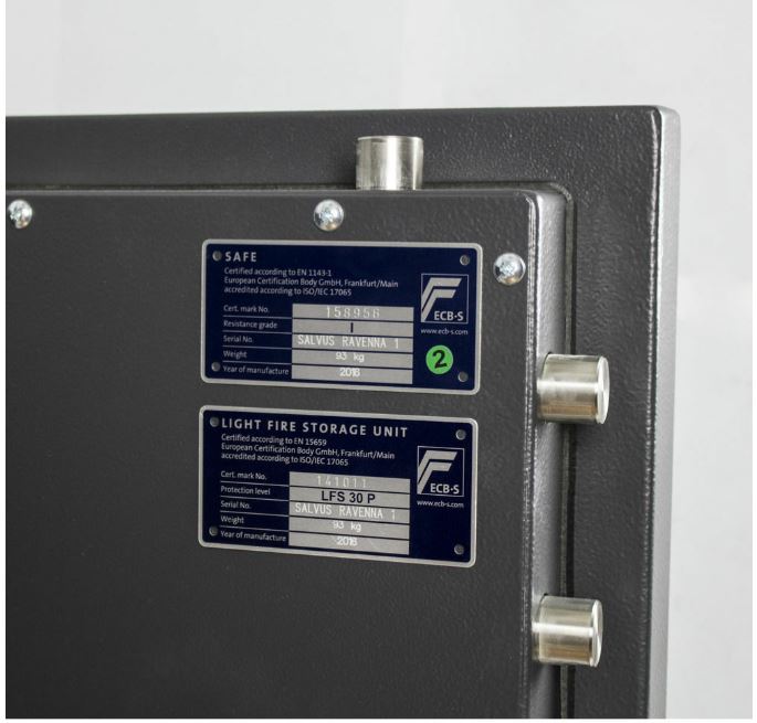 ECB-S gecertificeerde inbraakwerendheid volgens EN 1143-1 Grade I (indicatie waardeberging geld / kostbaarheden : € 10.000 / € 20.000)