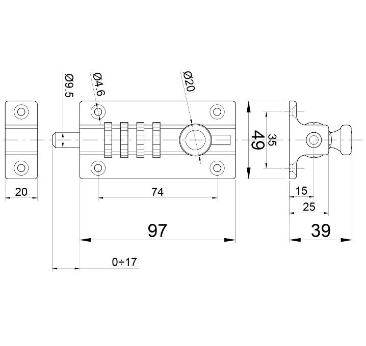 Schuifgrendel met cijferslot zwart gelakt