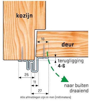 Meet eenvoudig de terugligging van uw deur: het aantal millimeters dat het kozijn voor de deur uitsteekt.