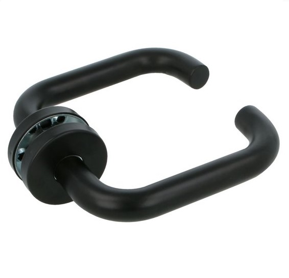 Set RVS deurklinken met een zwarte coating. Het onder rozet is van verzinkt staal. Bevestigingsmateriaal wordt meegeleverd.