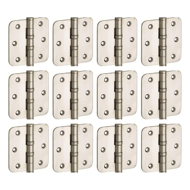 Set van 12 kogellagerscharnieren 76×76 ronde hoek vlak glans nikkel