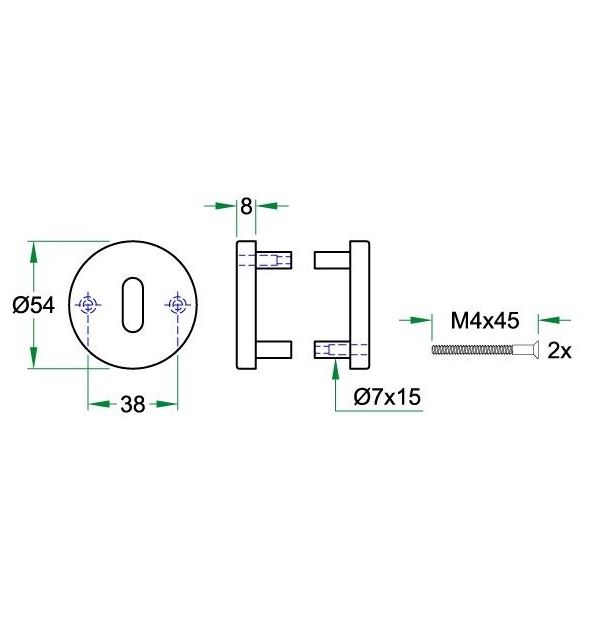 Blinde Plaatjes Ø 54×8 mm op stalen onderconstructie.