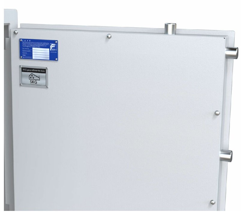 Standaard uitgevoerd met EN 1300 gecertificeerd dubbelbaard klavierslot met 2 sleutels.