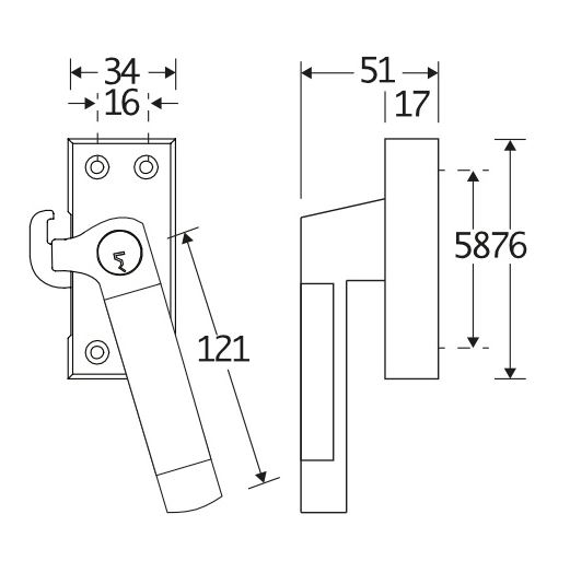 De maten van deze raamsluiting staan in de afbeelding.