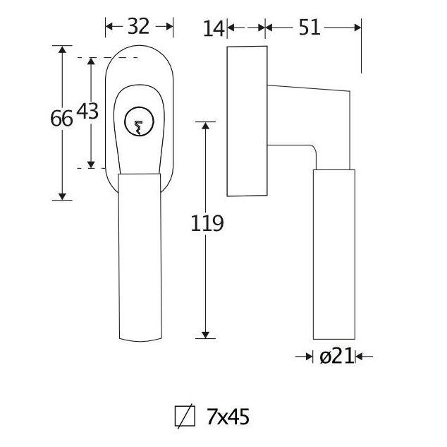 De maten van deze raamsluiting staan in de afbeelding.