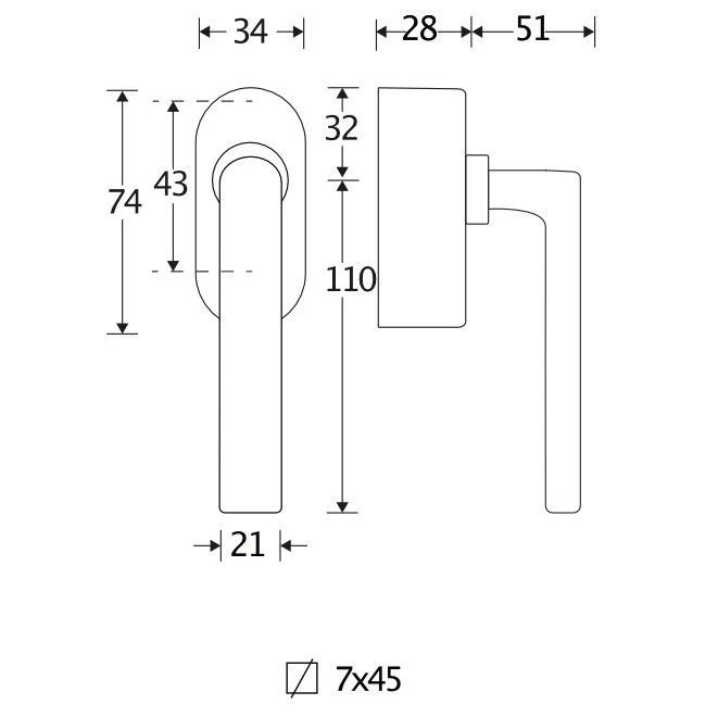 De maten van deze raamsluiting staan in de afbeelding.