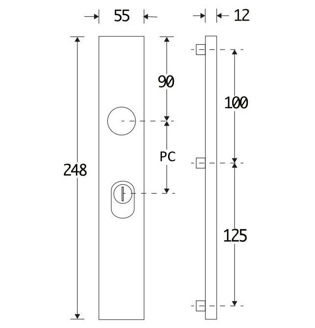SKG3 rechthoekig schild PC72 buiten met kerntrekbeveiliging mat chroom