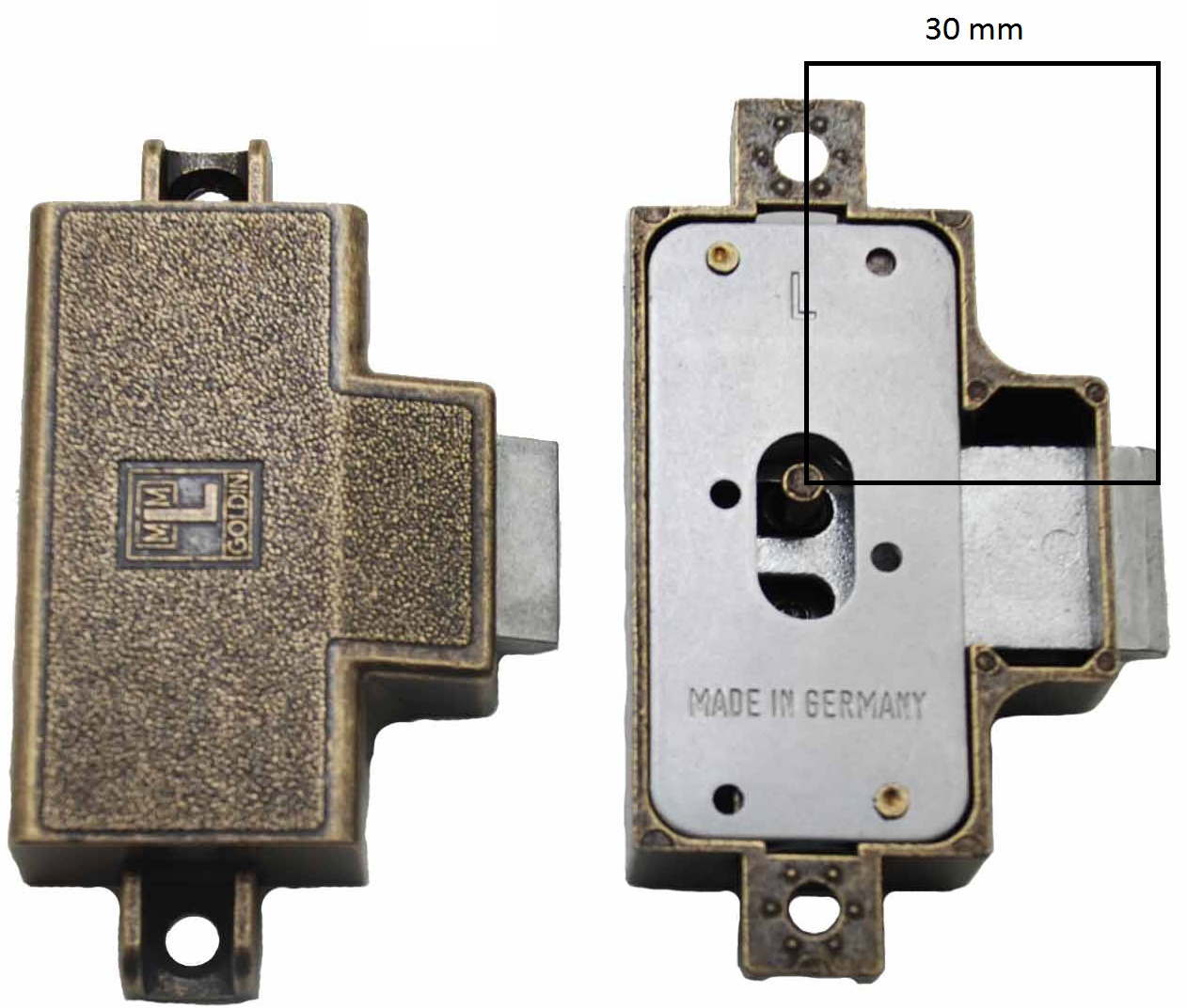 MLM Goldin Spanjoletslot 30 mm Links brons