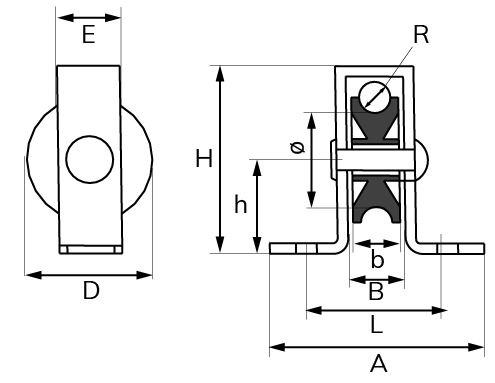 Staande katrol 25 mm open behuizing verzinkt
