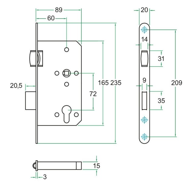 - Afmetingen conform DIN 18251 (is standaardmaat voor projectsloten in Nederland & België)