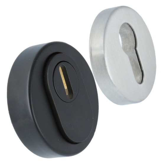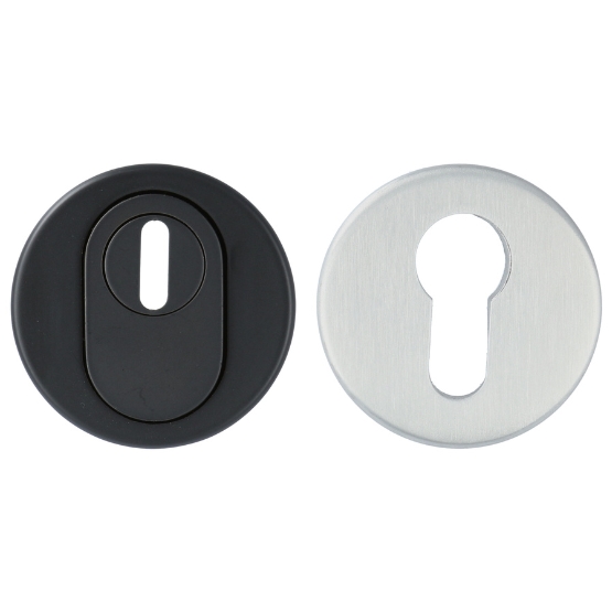 Dit is een veiligheidsrozet met kerntrekbeveiliging. Deze set bestaat uit 2 finishes. Zo heeft u een zwarte buitenrozet en een rvs binnen rozet. Hierdoor kun je al het beslag buiten zwart nemen en binnen in het rvs.