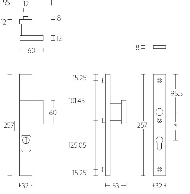 Dit zijn massieve veiligheidsschilden met kerntrekbeveiliging die gecombineerd kunnen worden met een losse deurkruk van de serie Square.