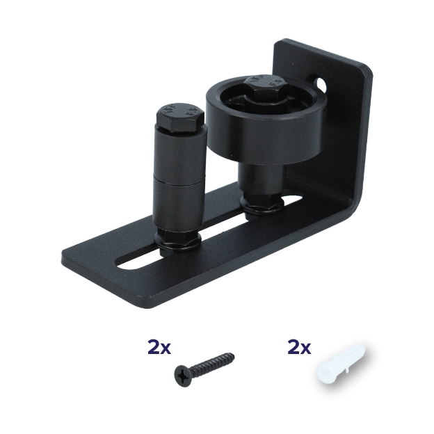 Verstelbare ondergeleider voor schuifdeur wandmontage grote rol mat zwart
