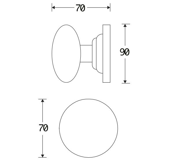 Voordeurknop Paddenstoel 70mm mat nikkel PVD