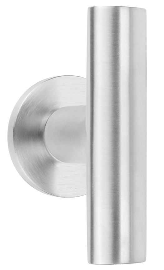Dit is een massieve voordeurknop vast op rozet. Het materiaal is rvs . De ontwerper van deze voordeurknop is Piet Boon.