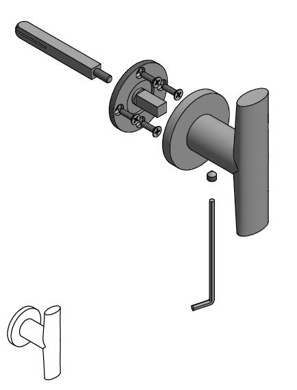 Bij deze vaste voordeurknop worden patentboutjes en een stift M10/8×90 mm geleverd waarmee u aan de binnenzijde van de deur een deurkruk kunt monteren op dezelfde hoogte. (Ook kan deze knop eenzijdig worden opgeschroeft door de meegeleverde schroefjes)